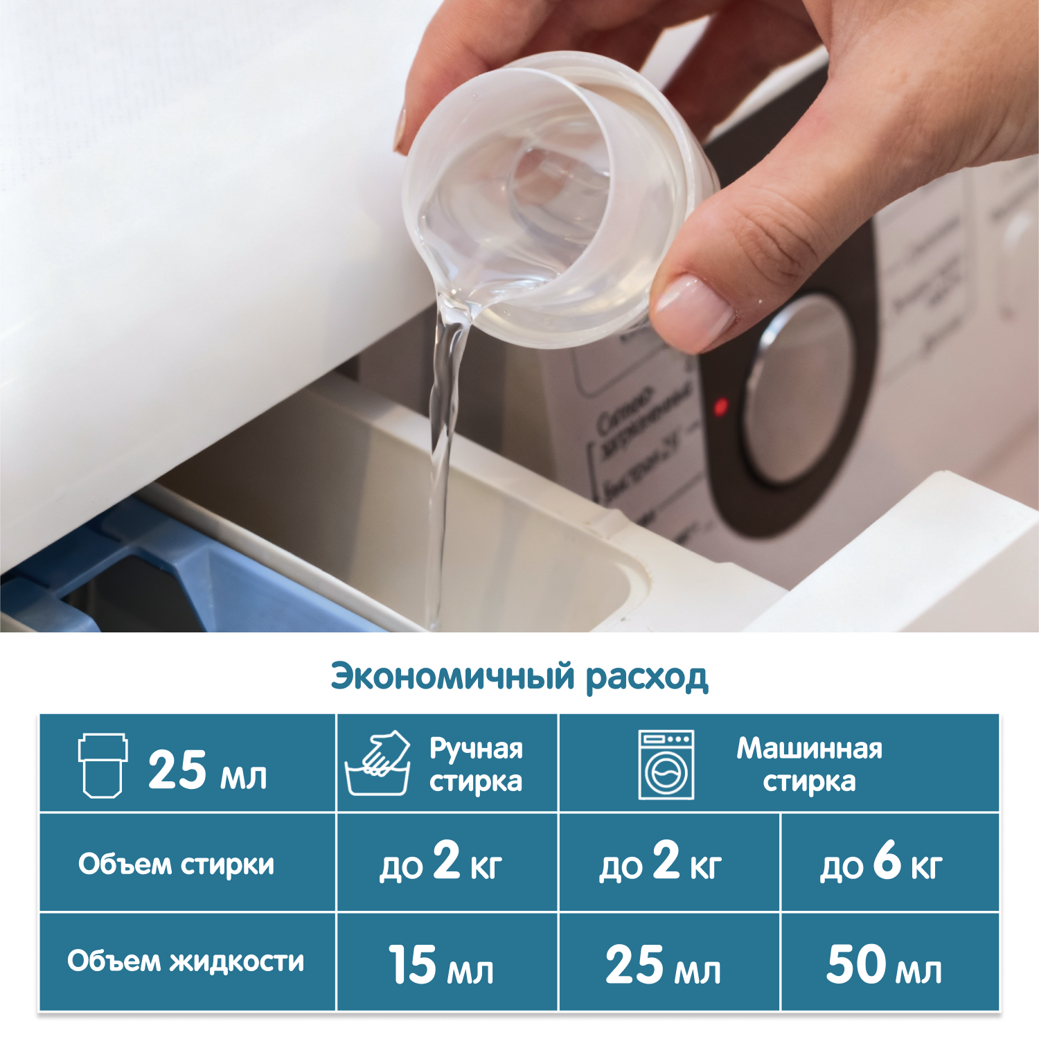 9. Концентрированная экономичная формула: от 15 до 50 мл на одну стирку