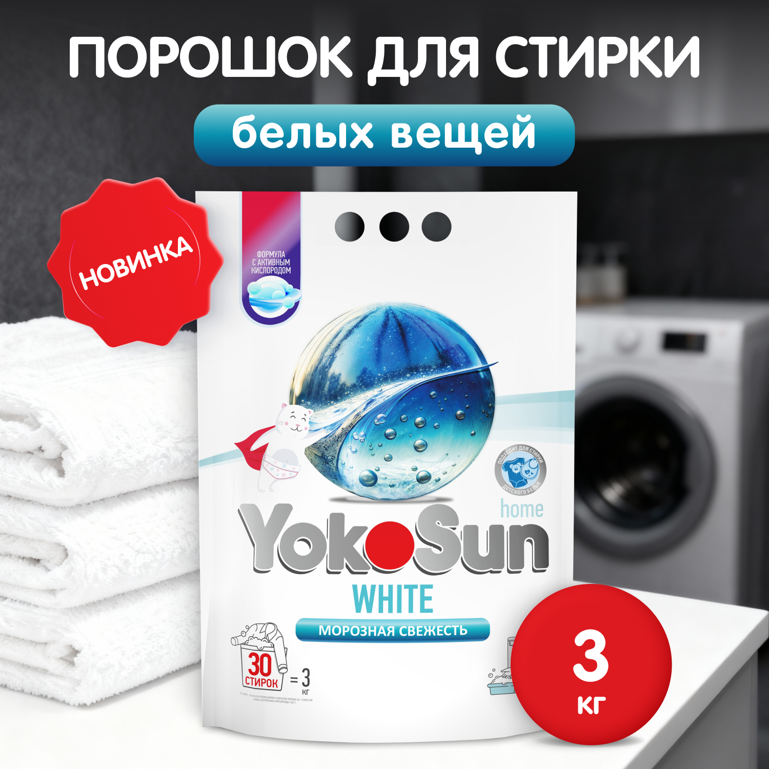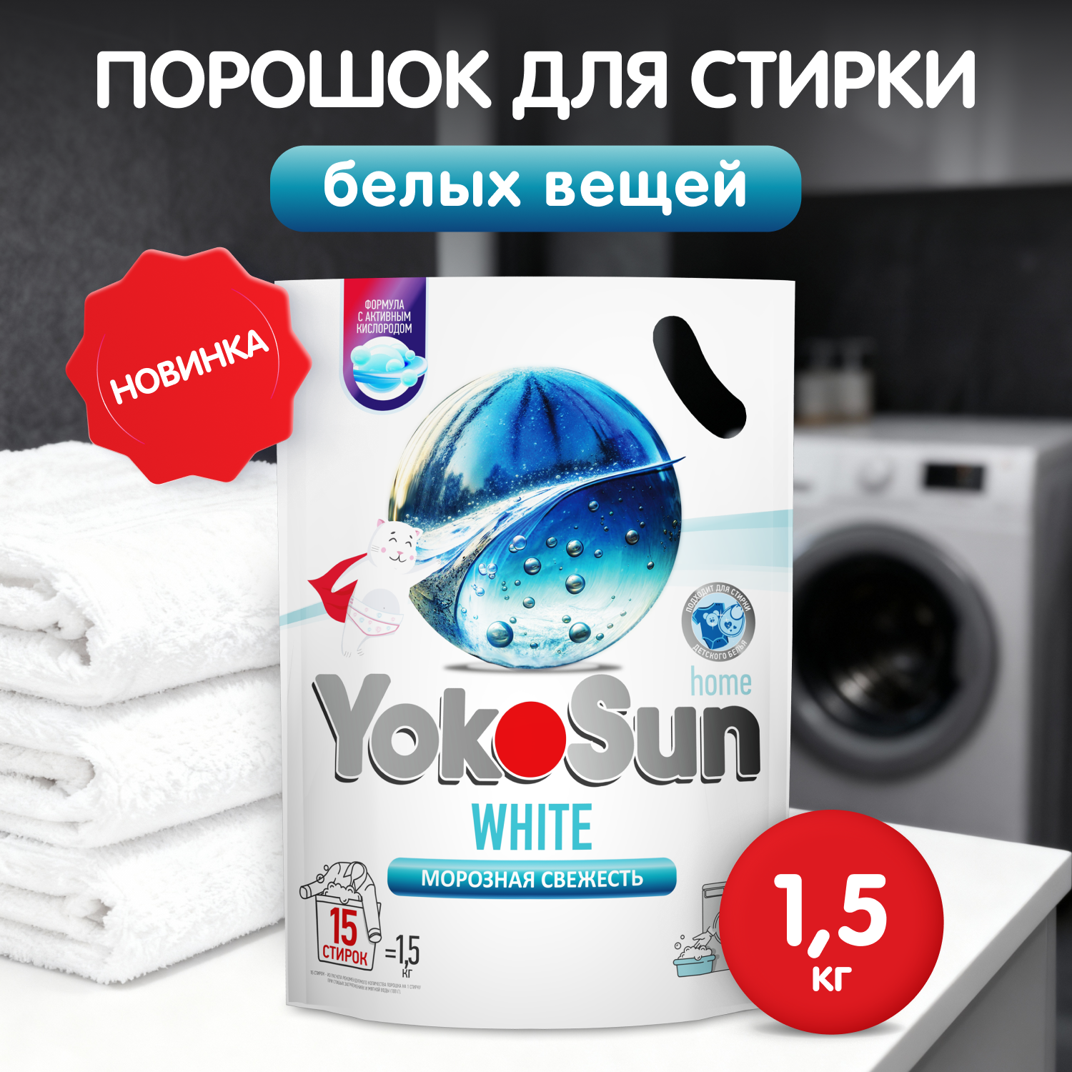 Порошок для стирки белых вещей YokoSun, 1,5кг