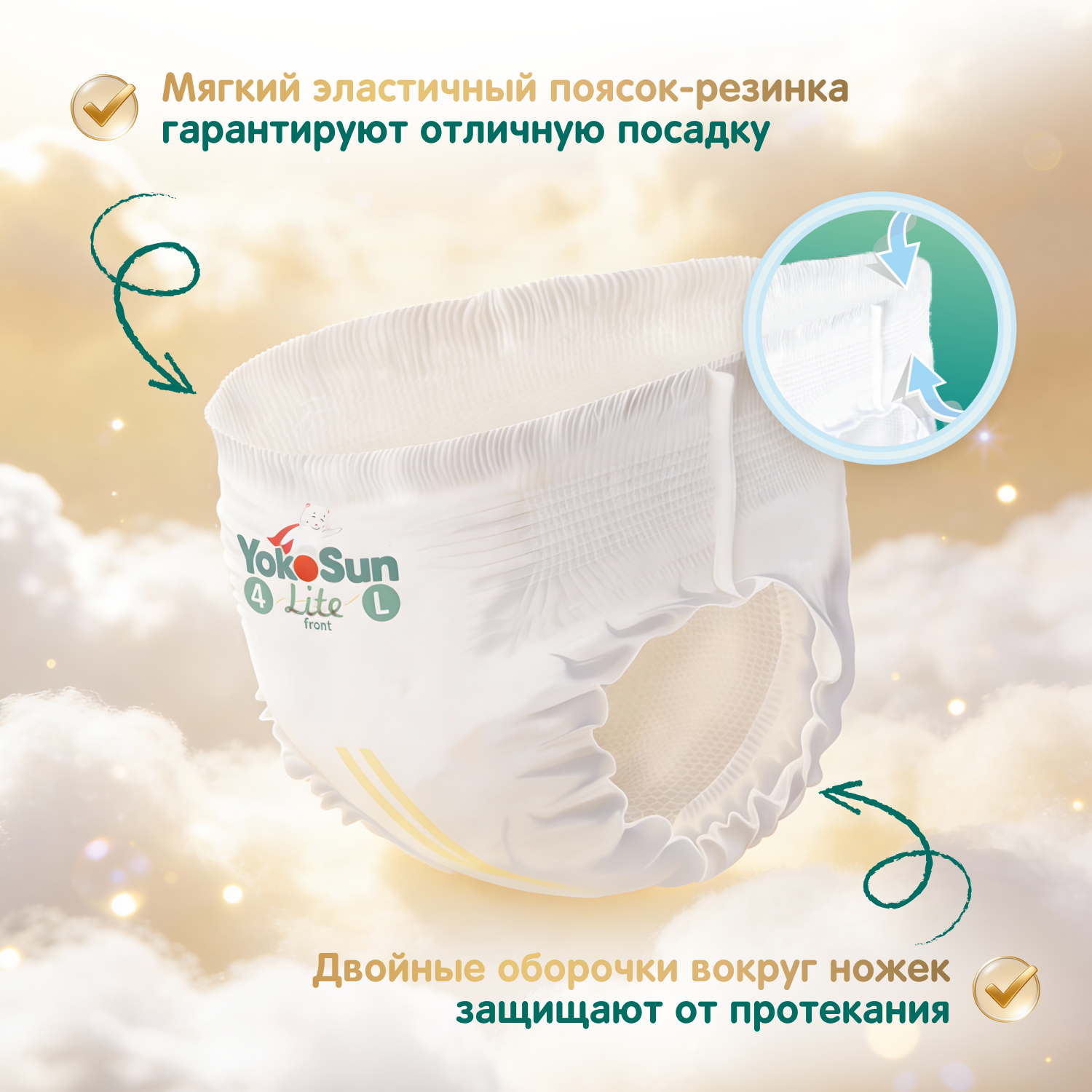 Подгузники-трусики YokoSun Lite, размер L (9-14 кг) 44шт