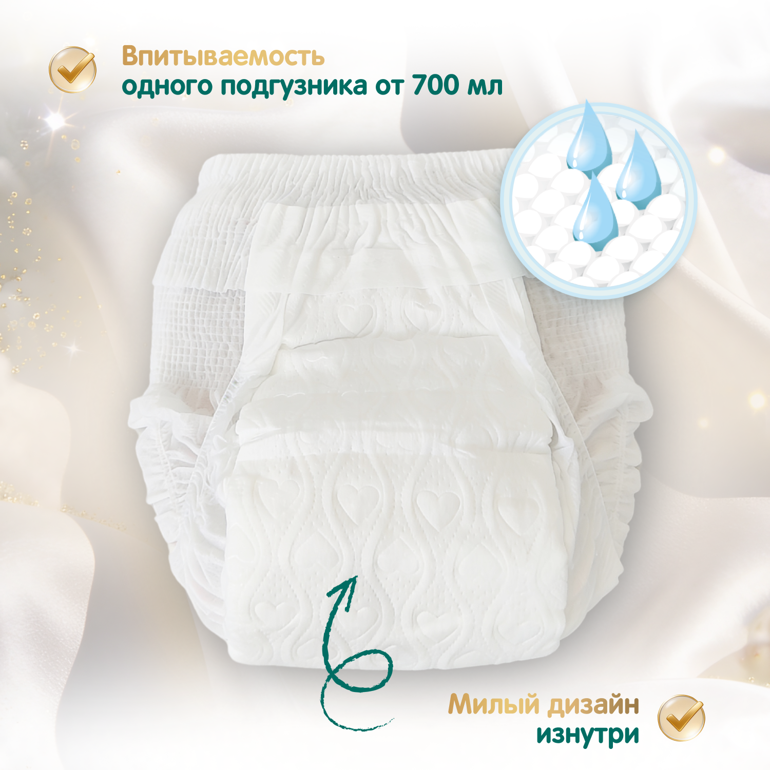 - Надежная система впитывания — мгновенно запирает влагу до утра
