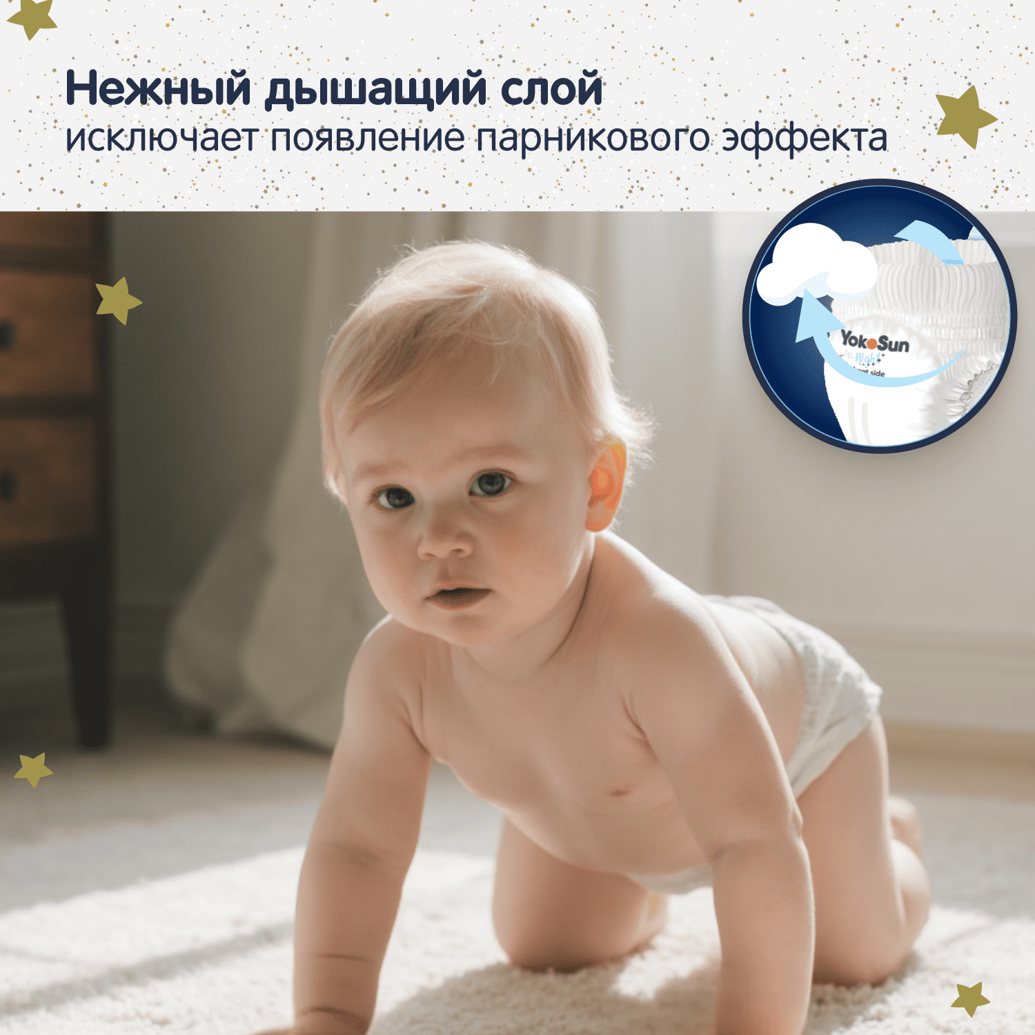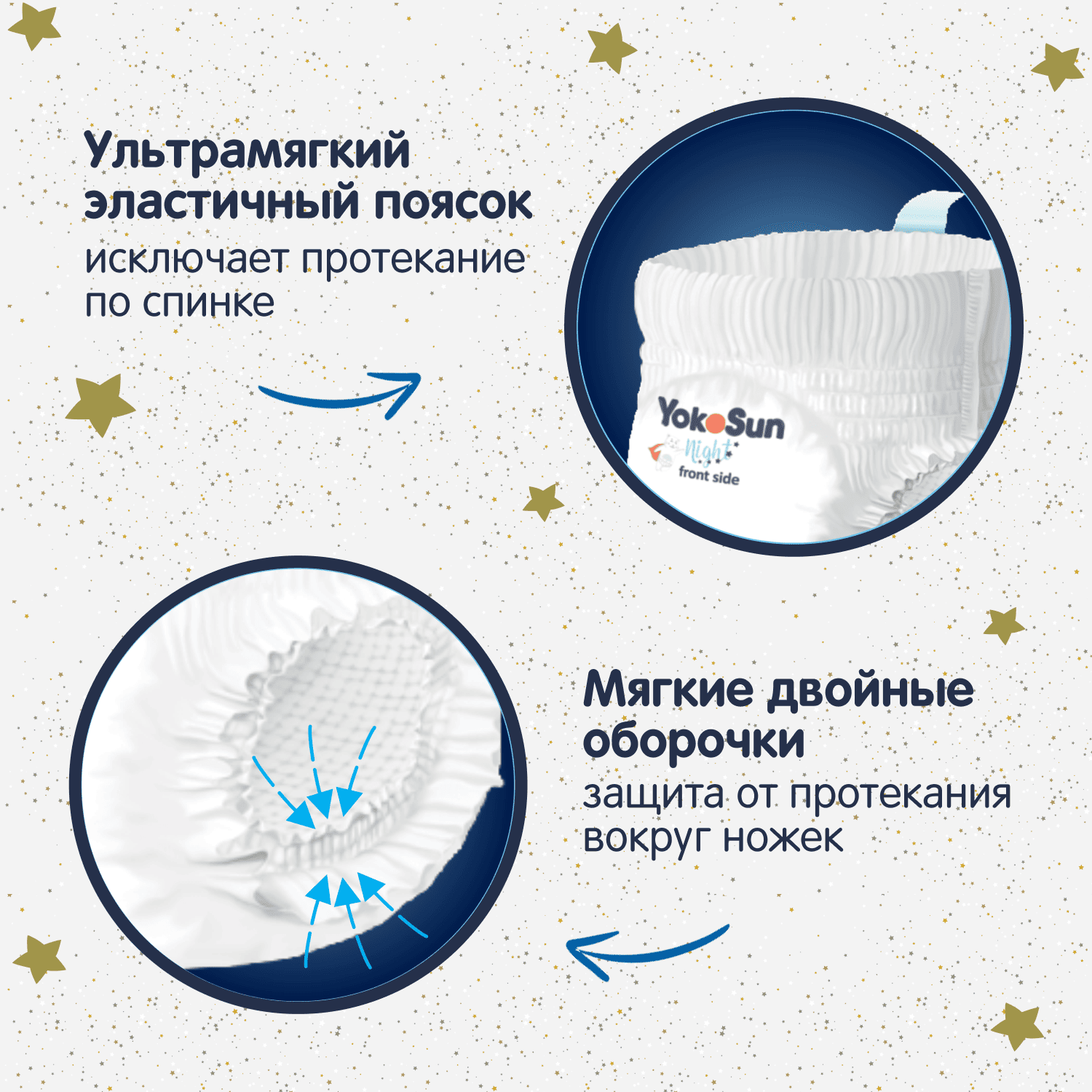 Ночные подгузники-трусики YokoSun Premium — это идеальное решение для спокойного и комфортного сна малыша. Они выполнены из специальных материалов, обеспечивающих отличную циркуляцию воздуха. Универсальный дизайн подходит как для девочек, так и для мальчиков, даря уверенность и спокойствие в любую ночь. Особый супервпитывающий слой надежно удерживает влагу внутри, сохраняя кожу сухой и исключая дискомфорт. Инновационный индикатор подскажет маме, когда пора сменить трусики, делая уход проще. Эластичные резиночки вокруг ножек обеспечивают надежную защиту и не натирают кожу. Мягкий поясок не стесняет движений, позволяя малышу свободно играть и спать, ощущая себя комфортно и свободно.