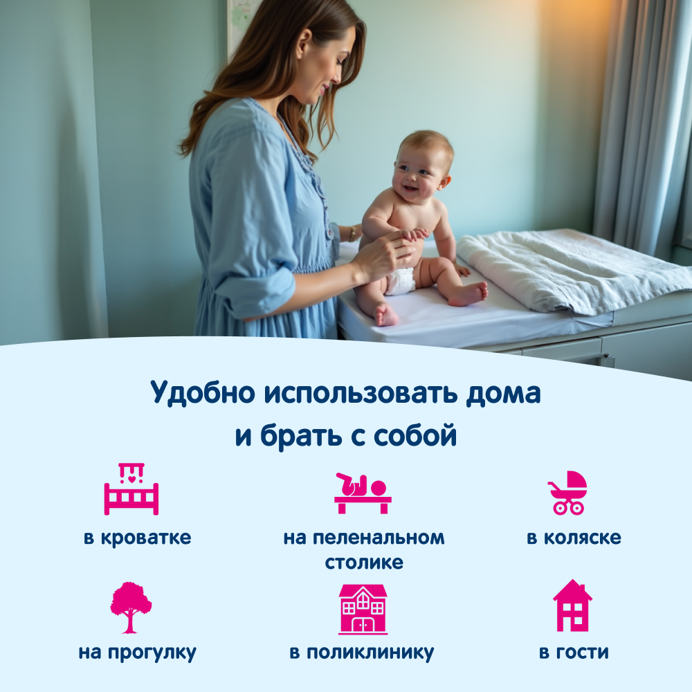 Мягкий верхний слой не натирает и не раздражает нежную кожу малыша.